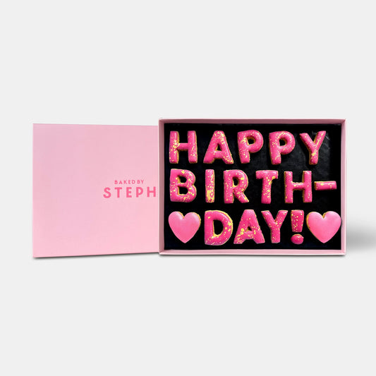 Happy Birthday! Pink Letterbox Message Iced Cookies