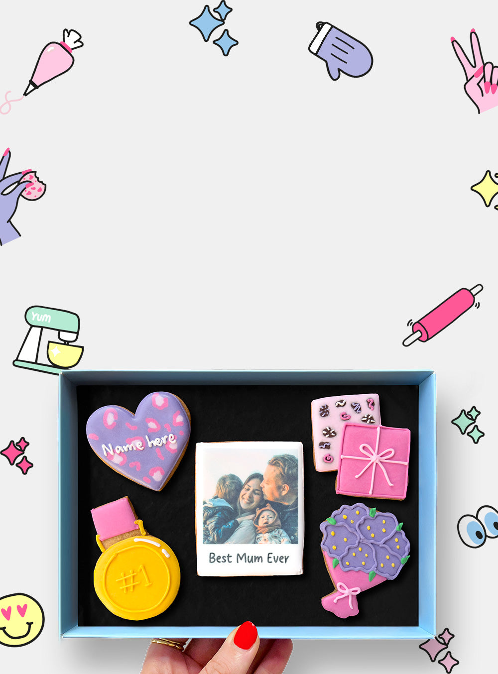 “Whether it’s a new home, new baby or just a good old happy birthday, Steph has a letterbox cookie design to show them that you care. Whatever the occasion.”