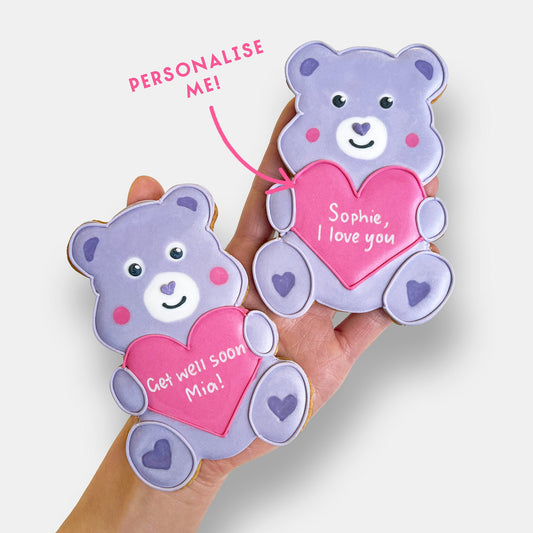 Personalised Purple Love Bear Letterbox Iced Cookie
