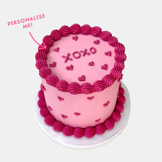 Personalised Pink Piped Heart Cake