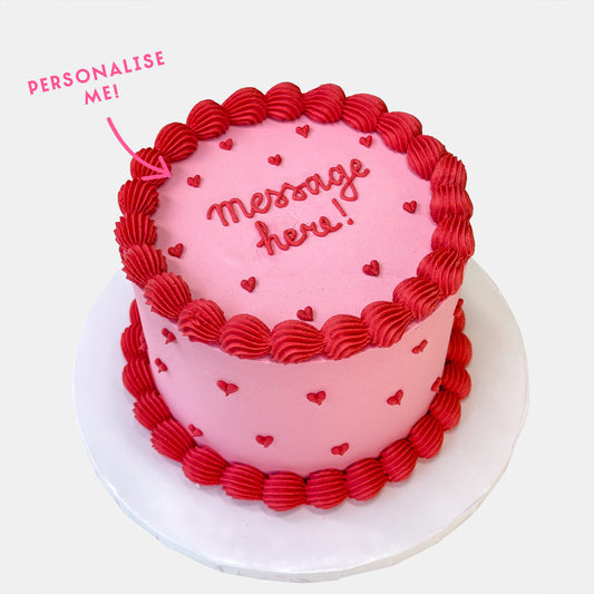 Personalised Red Piped Heart Cake