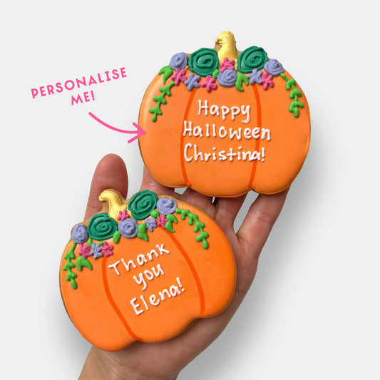 Personalised Floral Pumpkin Halloween Letterbox Iced Cookie