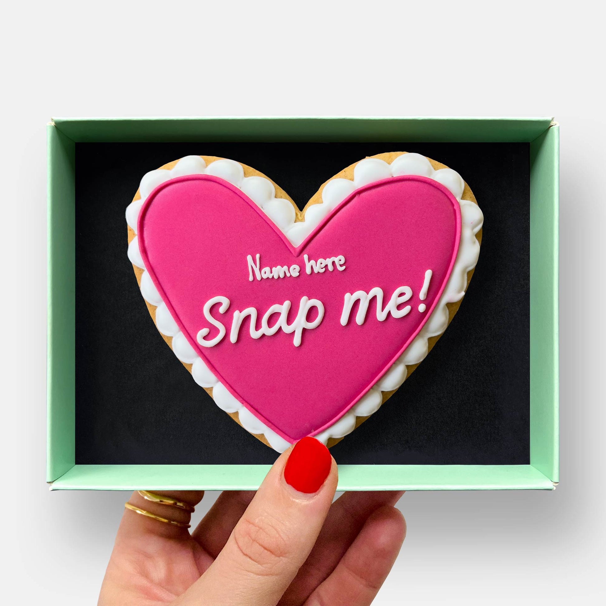 Crafted from buttery vanilla biscuit bases topped with vibrant royal icing, these hand-iced cookies are as delicious as they are thoughtful. Make this Mother's day gift extra special and personalise the heart with their name.