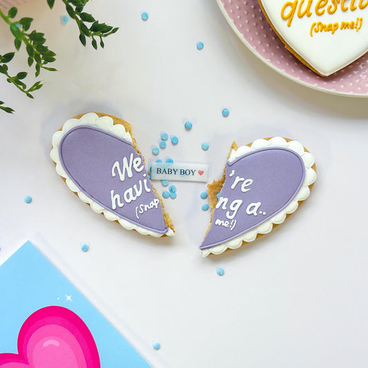 Gender Reveal Secret Message Heart Letterbox Iced Cookie