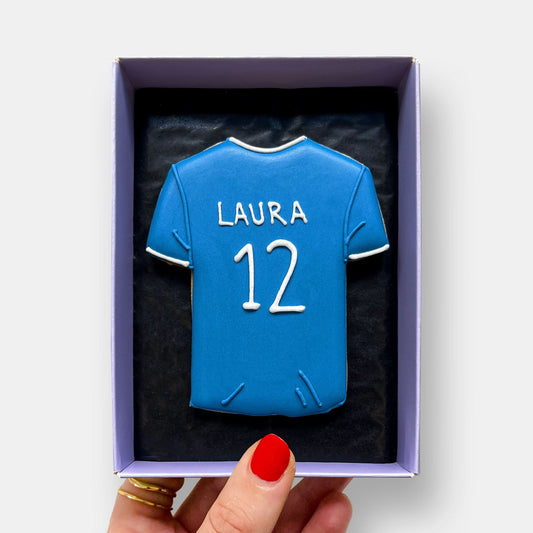 Personalised Football Shirt Birthday Letterbox Iced Cookie
