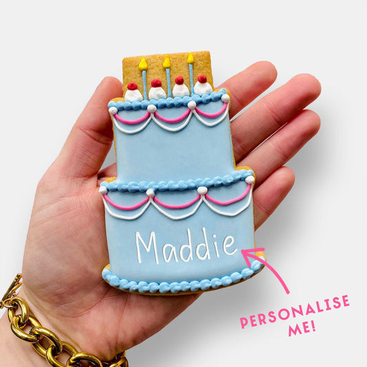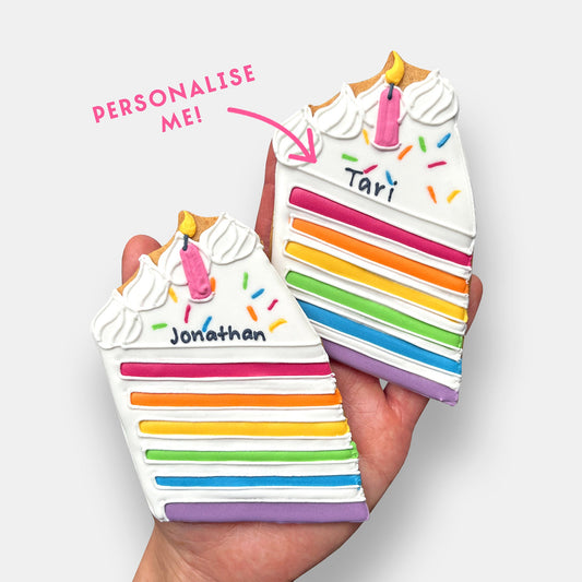Personalised Rainbow Birthday Cake Slice Letterbox Iced Cookie