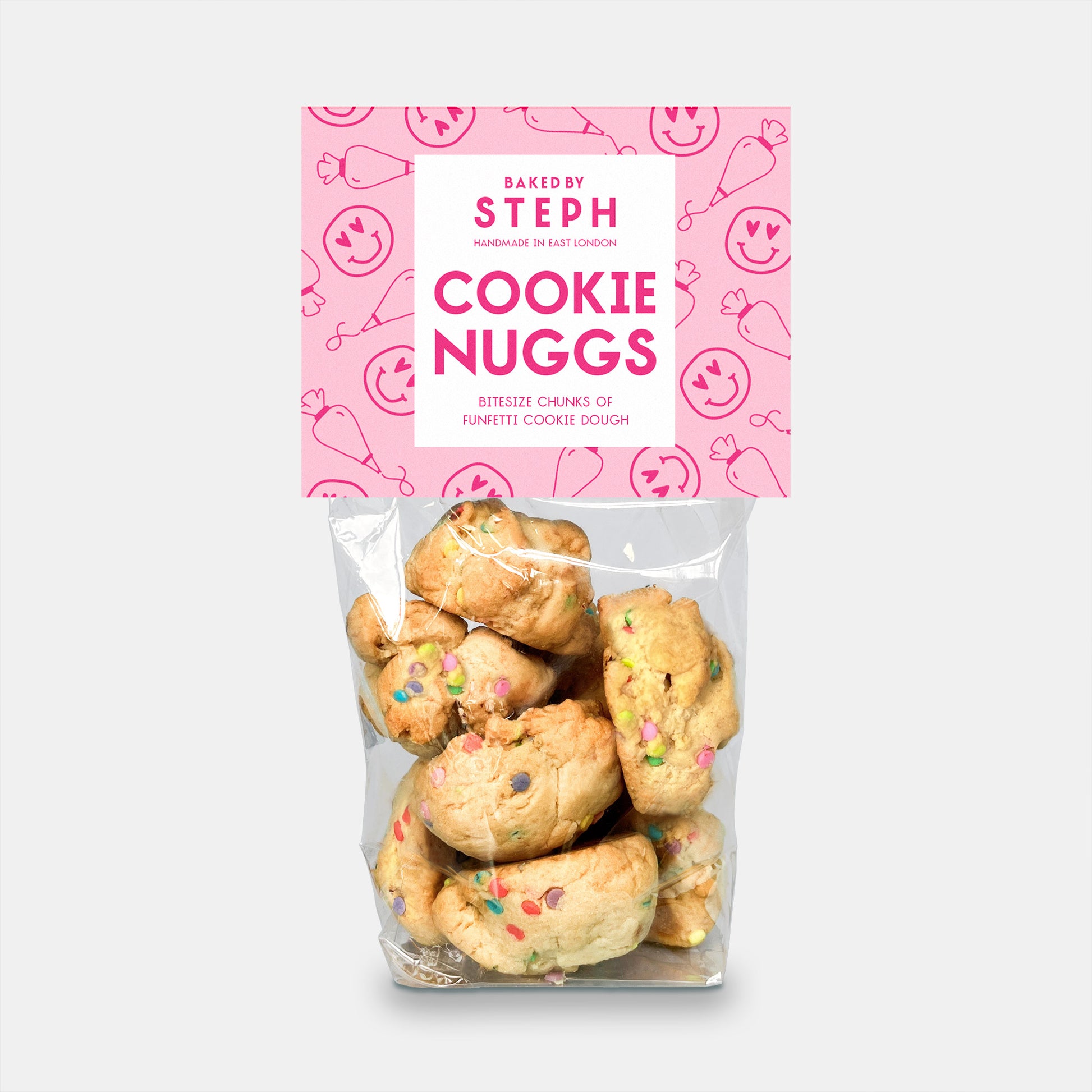 Great things come in small packages...right!? Since the dawn of Baked by Steph, we've always baked chunks of extra cookie dough as a staple team snack and now we're sharing these little nuggs of greatness with YOU! Yummy bitesize chunks of Funfetti cookie dough. YUM