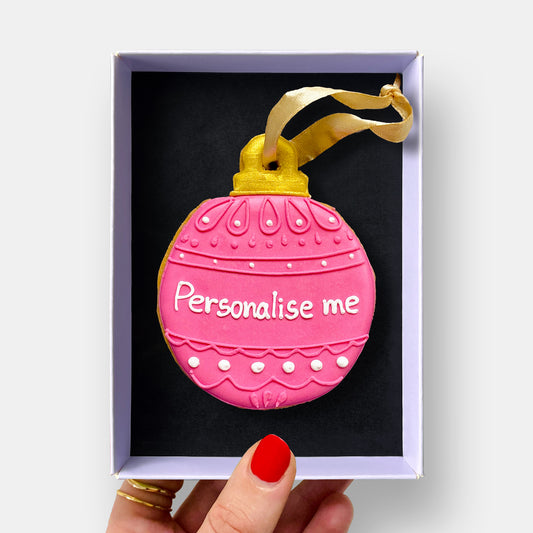 Personalised Pink Christmas Bauble Letterbox Iced Cookie