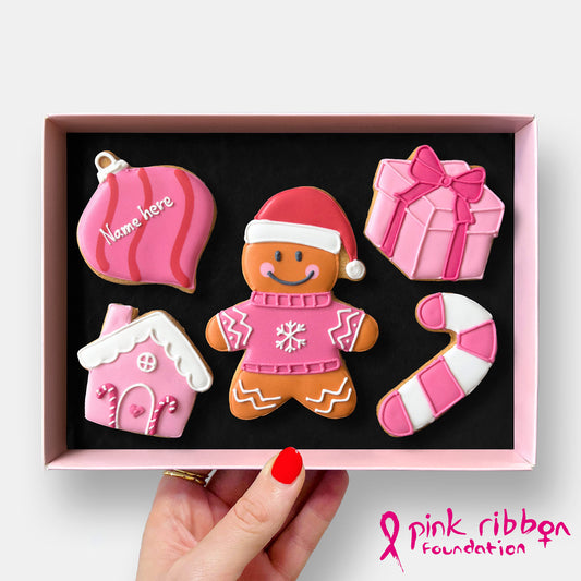 Personalised Very Pink Christmas Letterbox Iced Cookies (Supporting the Pink Ribbon Foundation)