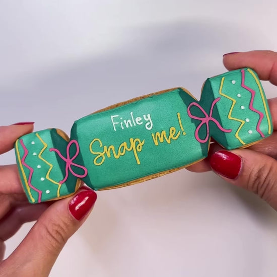 Surprise them with our Personalised Christmas Cracker Letterbox Iced Cookie! Snap it open for a burst of colourful sprinkles and a cheeky Christmas joke inside.